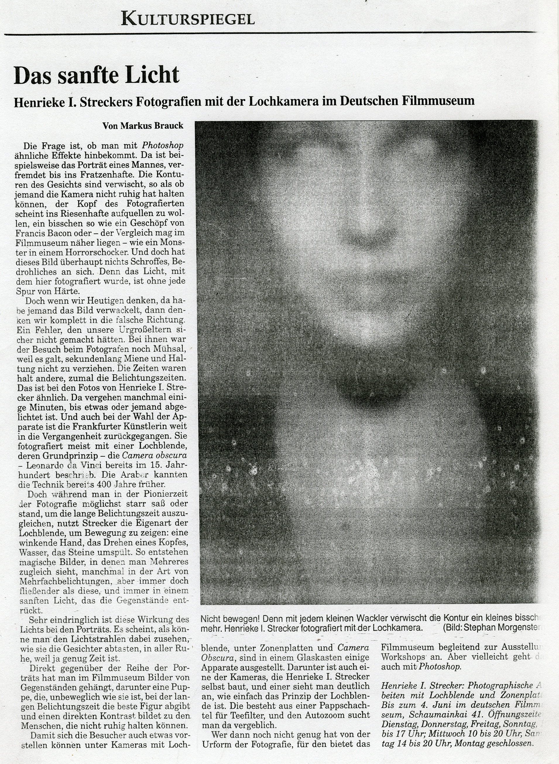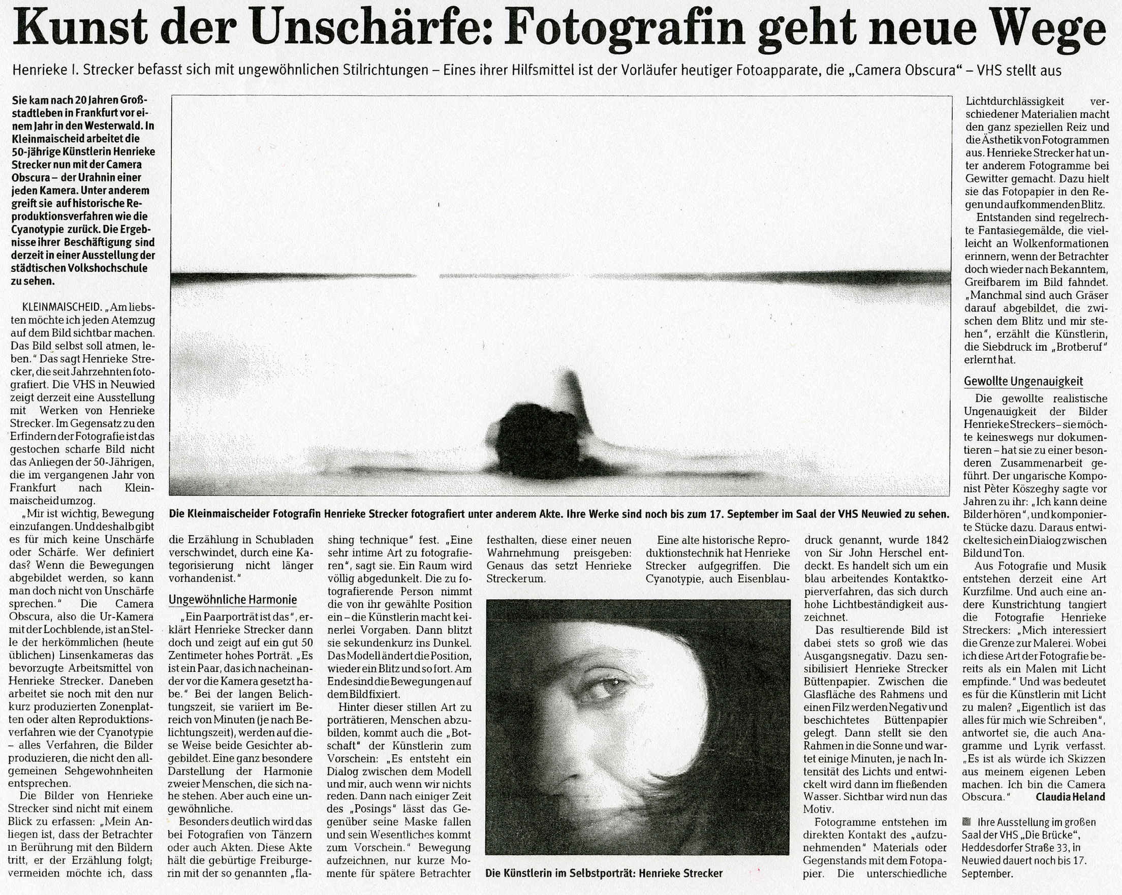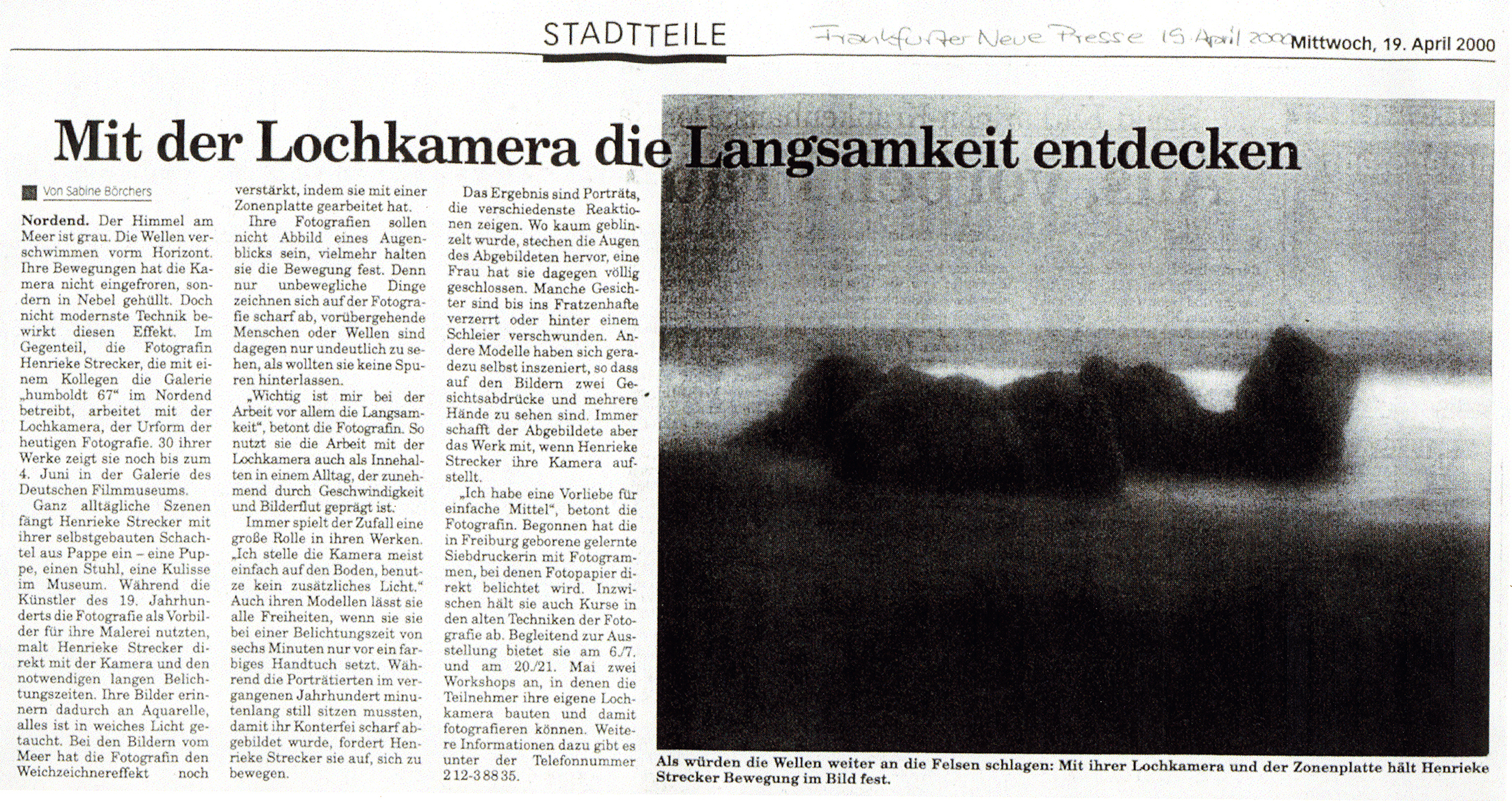The evocative, haunting work on display in Edwards ranged far beyond photography, into painting, printmak- ing, bookmaking, poetry, and video. “Henrieke crosses boundaries joyfully to use media in combination,” says gallery co-curator (and photography teacher) Franz Nicolay. “At the core of her work is a quest for both visual and graphic simplicity, all rooted in her natural surroundings. Her ‘Snow Poem’ series, for example, reminds you of the terse minimalism of sumi brush work, a sort of ‘visual haiku’.”
